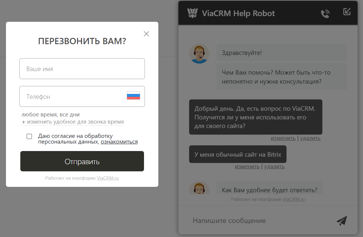 Присоединяйтесь, опробуйте ViaCRM на своем сайте - ведь 15 дней это будет совершенно бесплатно. А дальше - оплата по результату. Нет заявок - не нужно ничего платить.